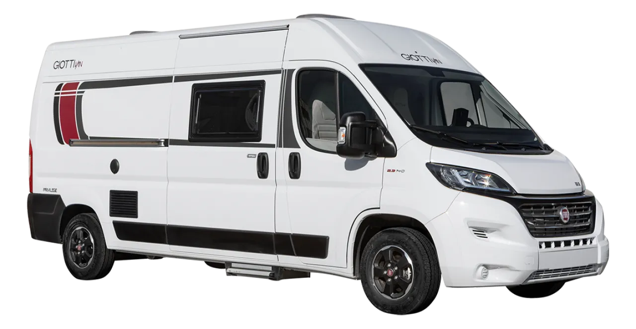 La autocaravana capuchina GIOTTIVAN 60 B es un amplio modelo familiar con 6 plazas para dormir y 6 asientos homologados para viajar. En la parte posterior se encuentran 2 literas de 210×80 cm cada una. La zona del salón se transforma en una cama doble de 175×100 cm y dispones de otra amplia cama sobre cabina de 210×160 cm.
