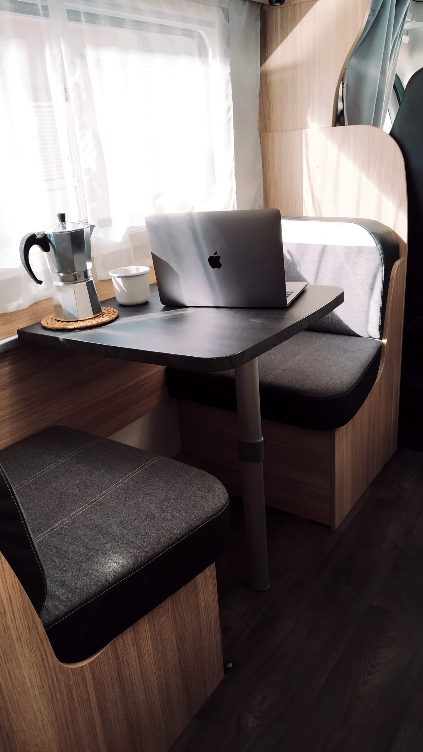 La autocaravana capuchina Sunlight A72 es un amplio modelo familiar con 6 plazas para dormir y 6 asientos homologados para viajar, doble comedor.